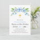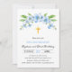 Invitation Bleu flores or croix baptême et premier anniversai