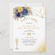 Invitation Bleu Jaune Or Peint Floral Brunch et Bubbly