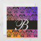 Invitation BLEU JAUNE VIOLET NOIR DAMAS MONOGRAMME, blanc