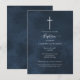 Invitation Bleu marine et blanc croix moderne baptême