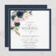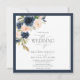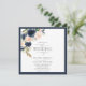 Invitation bleu marine et rose pâle Aquarelle florale Script