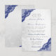 La conception présente un motif de dentelle argentée délicate en dégradé et une dentelle de coin bleu marine. Un script élégant en blanc doux complète le look. Cette invitation de mariage peut être personnalisée pour tout événement spécial comme un mariage, une fête de mariage, un dîner, une fête de fiançailles, un anniversaire et bien plus encore. Besoin d'aide pour la formulation de save the date ou la personnalisation ? Contactez-moi via le lien "Demander à ce designer" sur cette page