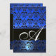 Invitation BLEU NOIR DAMAS MONOGRAMME ,blanc brillant