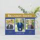 Faire-part de diplôme. Personnalisez avec vos photos et les réalisations de votre enfant. Thème bleu et or.