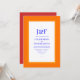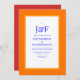 Faire-part de mariage moderne et simpliste aux accents bleu, orange, jaune et rouge personnalisable selon les spécificités de votre événement.