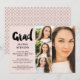 Moderne simple noir et rose pastel Gris script 4 photos graduation faire-part avec collage style cabine photo, avec des points géométriques motif à l'arrière, toutes les couleurs sont modifiables.