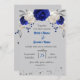 Invitation bleu royal fleurs blanches feuille gris mariage