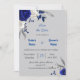 Invitation bleu royal fleurs blanches gris feuilles enregistr