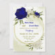Invitation bleu royal fleurs blanches vert feuille mariage