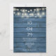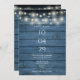 Invitation Bleu Rustique Bois Chaîne Lumières Mariage Date