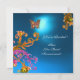 Invitation BLEU SAPPHIR PAPILLON, rose vif jaune marron