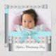 Photographie turquoise et bleue d'une petite fille à l'invitation du baptême. Cette magnifique invitation à baptiser en bleu turquoise est facilement customisée pour votre événement en ajoutant vos photos et détails d'événement, le style de police, la taille et la couleur de police et le libellé.
