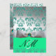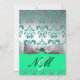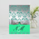 INVITATION BLEU VERT RUBAN BLANC MONOGRAMME EN DAMAS NOIR