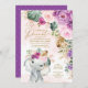 Invitation Bleu Violet Tropical Greenery Elephant Baby