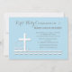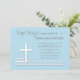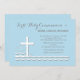 Invitation de la Première Communion sainte d'un garçon avec le symbole chrétien du poisson ou de l'islytie, une croix blanche audacieuse et des vagues d'eau. (VTZY)