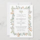 Une abondance de belle végétation encadre cette belle faire-part de mariage au style moderne mais vintage. L'illustration originale des plantes feuillus, des baies et des bourgeons sucrés est présentée dans une palette de couleurs neutres populaire. Une belle suite d'invitation pour une grange, une ferme ou un mariage rustique élégant.