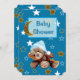 Joli garçon baby shower bleu et or lune et étoiles somptueux ours en peluche dans les invitations pyjamas.