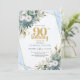 Invitation Blue Botanical Gold Frame 90th Birthday Invite