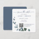 Invitation Blue Botanical Leaf Save the Date w/QR Code+Image