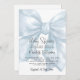 This Chic Oversized Bow Baby Shower Invitation features a bold blue bow that takes center stage, covering nearly the entire design. The bow makes a refined statement, complemented by the simple "Baby Shower" at the top, displayed in a mix of soft gray handwritten script and classic serif fonts. The blue background, with subtle off-white accents, adds a modern, elegant touch—perfect for a baby boy shower or for a mom-to-be who loves blue.