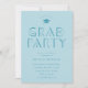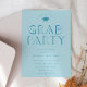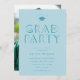 Invitation de la fête de graduation, boho et mystique, avec un texte typographique qui dit "GRAD PARTY". Ajoutez une photo du diplômé au verso de la carte. La couleur est bleue.
