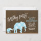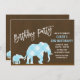 Invitation Blue Elephants Brown moderne fête d'anniversaire T
