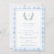 Une aquarelle en vichy classique avec une crête de laurier pour le monogramme initial. Tout libellé peut être modifié pour convenir à votre événement.