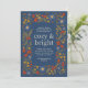 Un cadre rustique et charmant de fleurs illustrées encerclent cette chaleureuse et accueillante invitation à la fête d'automne avec des couleurs de bleu marine riche, rouge rouillé et jaune doré. Parfait pour une chute entre amis, un anniversaire d'adulte ou même un repas d'action de grâces, le texte facile à modifier vous donne de nombreuses options pour la personnalisation.