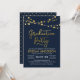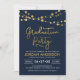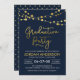 Invitation Blue Faux Gold Strings of Lights Graduation Party