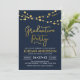Elégante invitation Grad Party avec des cordes de lumières et le mot "Graduation Party" en faux or contre un arrière - plan bleu. La carte comprend un motif correspondant à l'arrière. Consultez d'autres invitations et objets de graduation ici https://www.zazzle.com/collections/class_of_2017_graduation-119637323833384053?rf=238364477188679314 Personnalisez-le en remplaçant le texte de l'espace réservé pour ajouter vos informations. Pour plus d'options, cliquez sur le bouton "Customiser". *Veuillez noter que le filigrane Zazzle qui apparaît dans l'aperçu du zoom n'apparaîtra PAS sur le produit imprimé final. © Bois de rose et agrumes
