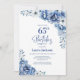 Invitation vos amis et proches avec cette invitation de fête florale bleue 65e anniversaire. La zone de texte personnalisable de ce modèle d'invitation vous permet d'inclure sans effort tous les détails nécessaires à votre fête d'anniversaire, y compris la date, l'heure, le lieu et les informations RSVP. Une variété de types de papier et de styles d'angle sont disponibles pour vos invitations uniques, ainsi que l'option de téléchargement si vous préférez un format numérique.