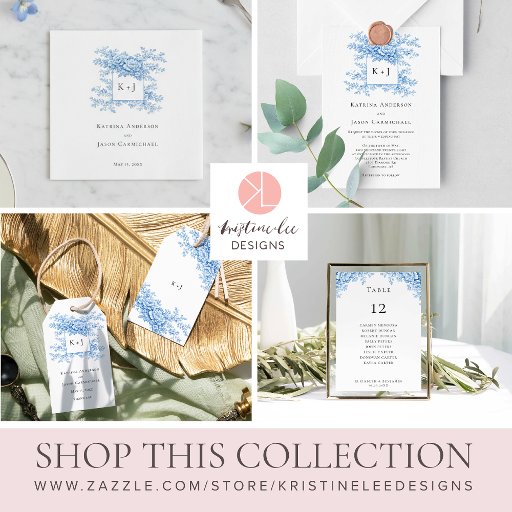 Blue Chinoiserie Floral Wedding MonogramConçu par Kristine Lee