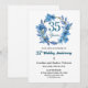Invitation Blue Floral Gold Frame 35th Wedding Anniversary