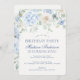 Invitation Blue Floral Hydrangea Botanique fête d'anniversair