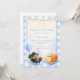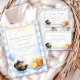 A fresh summer Baby-Q design featuring soft blue gingham, warm string lights, and a charming watercolor grill scene. A blue balloon, fresh lemonade, watermelon slices, and picnic basket details create a light and cheerful backyard atmosphere. The structured inner frame keeps the center clean and airy for event wording, while the illustrated cookout scene anchors the bottom with playful charm. Perfect for a spring or summer outdoor baby shower with a sweet picnic vibe.