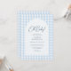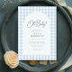 Classic blue gingham baby shower invitation designed for celebrating a baby boy or a gender neutral shower. Features a timeless gingham pattern with clean, easy to read text. Ideal for traditional, rustic, farmhouse, or picnic style baby showers. Fully editable text for names, date, time, and location. Print-ready design.