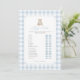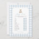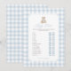 Invite friends and family to participate in a game of 'baby traits' with this elegant blue gingham teddy bear baby shower game card.