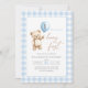 Invitation Blue Gingham Teddy Bear Balloon Boy 1st Birthday