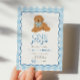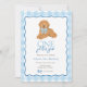 Celebrate your little one’s “one golden year” with this sweet puppy themed invitation! Featuring a playful golden doodle wearing a blue gingham bow and a matching blue gingham border, this design is perfect for a first birthday party. Easily customize the name, date, and party details right in your browser—no special software needed. A charming choice for dog lovers and darling birthday celebrations alike!