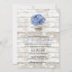 Invitation Blue Hydrangea Floral Jar Mariage en bois rustique