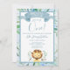 Cube lionceau de bébé couleur aquarelle avec feuillage vert et arrière - plan bleu aquarelle. Idéal pour une soirée safari en bleu ou en Afrique. Veuillez consulter mon magasin pour trouver les objets correspondants à votre fête d'anniversaire !