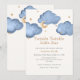 Belle et adorable invitation baby shower, présenter nuage bleu aquarelle, lune et étoiles avec les mots "Twinkle Twinkle Little Star". Parfait pour le bébé garçon et bébé fille baby shower lune et le thème étoiles. Vous pouvez customiser du texte et des couleurs.
