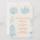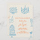 Invitation Blue Orange Drawn Whimsical All In One Wedding
