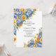 Un arrangement floral d'angle gai et élégant, avec des pivoines bleues douces et des marguerites jaunes ensoleillées, délicatement entrelacées avec un feuillage vert. L'illustration de style aquarelle allie la fraîcheur du printemps à la sophistication des fleurs de pivoines, ce qui en fait un modèle parfait pour les invitations de mariage, papeterie ou cadres décoratifs. Les éléments floraux rayonnent du coin, formant un espace ouvert idéal pour ajouter des éléments de texte ou de design personnalisés.