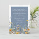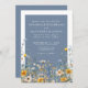 Dusty Blue Wildflower Wedding Invitation with Yellow Flowers. Set the tone for your wedding with this elegant design featuring a dark periwinkle blue background on the front, accented by a crisp white border and white typography for a clean, refined contrast. The back of the invitation continues the look with a solid coordinating blue background for a polished, cohesive finish.