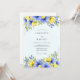 A vibrant watercolor design bursts with striking blue blossoms and cheerful yellow buds, accented by delicate green foliage. This cheerful composition evokes a light and airy spring atmosphere, perfect for a joyous occasion.