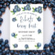 Anniversaire de enfant party! avec l'aquarelle illustration de bleuets avec des feuilles. Le texte dit "baies d'abord".