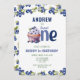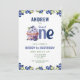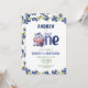 Boy's Berry 1er anniversaire invitation de fête avec le thème du bleuet. Sucré Un cupcake gelé de bleuet avec bordure de bleuet. Berry fun pour le premier anniversaire de la baie de votre enfant!