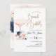 Invitation Blush+Blue Flowers Brunch Bubbly Champagne rose