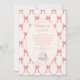 A chic blush pink Christmas invitation featuring a delicate ribbon bow lattice background and a cozy Santa illustration in soft gingham tones. The minimalist yet festive design blends vintage holiday charm with a modern coquette twist — perfect for elegant Christmas parties, gift exchanges, or festive gatherings with a feminine touch.